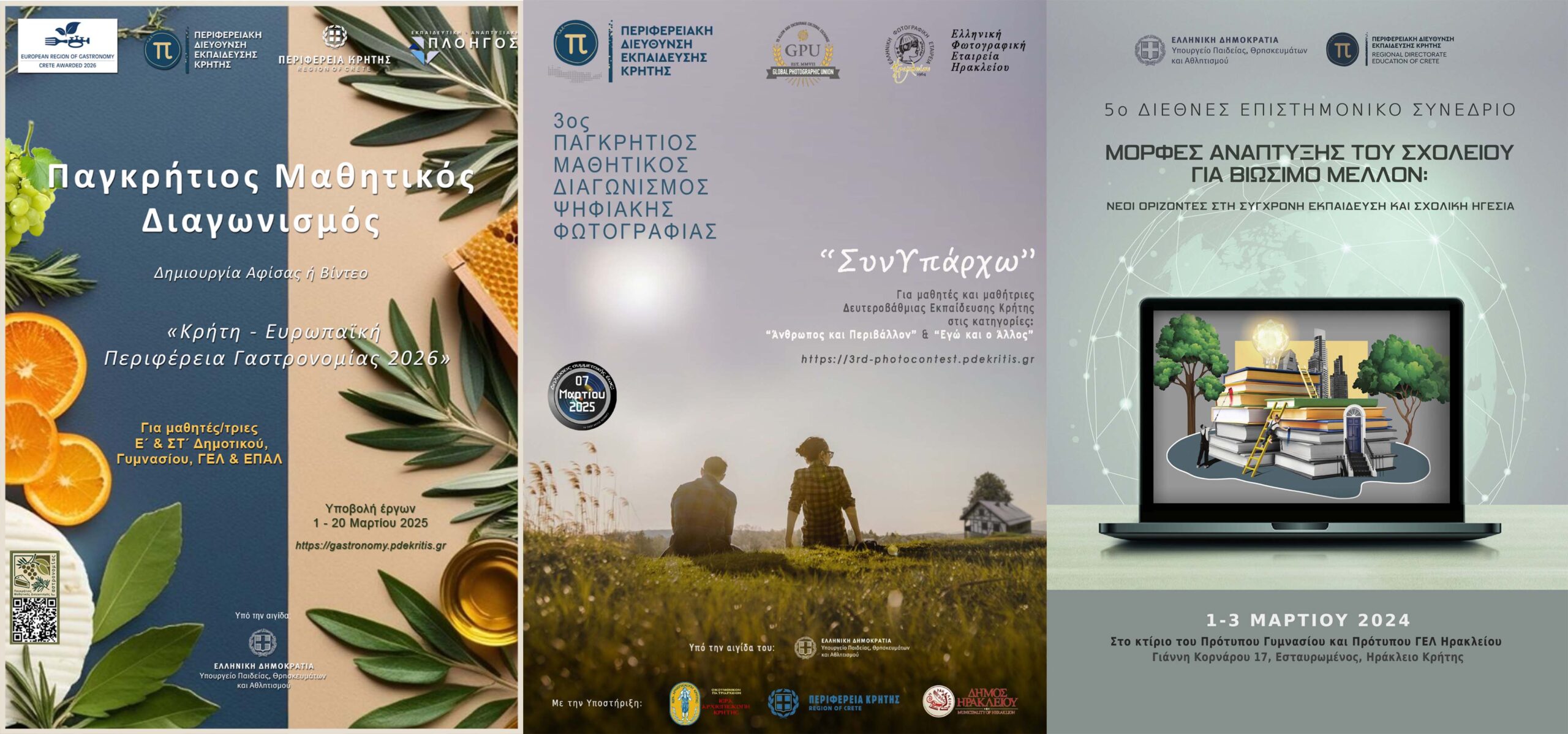 The Regional Directorate of Education of Crete is headquartered in Heraklion and is responsible for matters related to Primary and Secondary Education in the prefectures of Heraklion, Chania, Lasithi, and Rethymno…